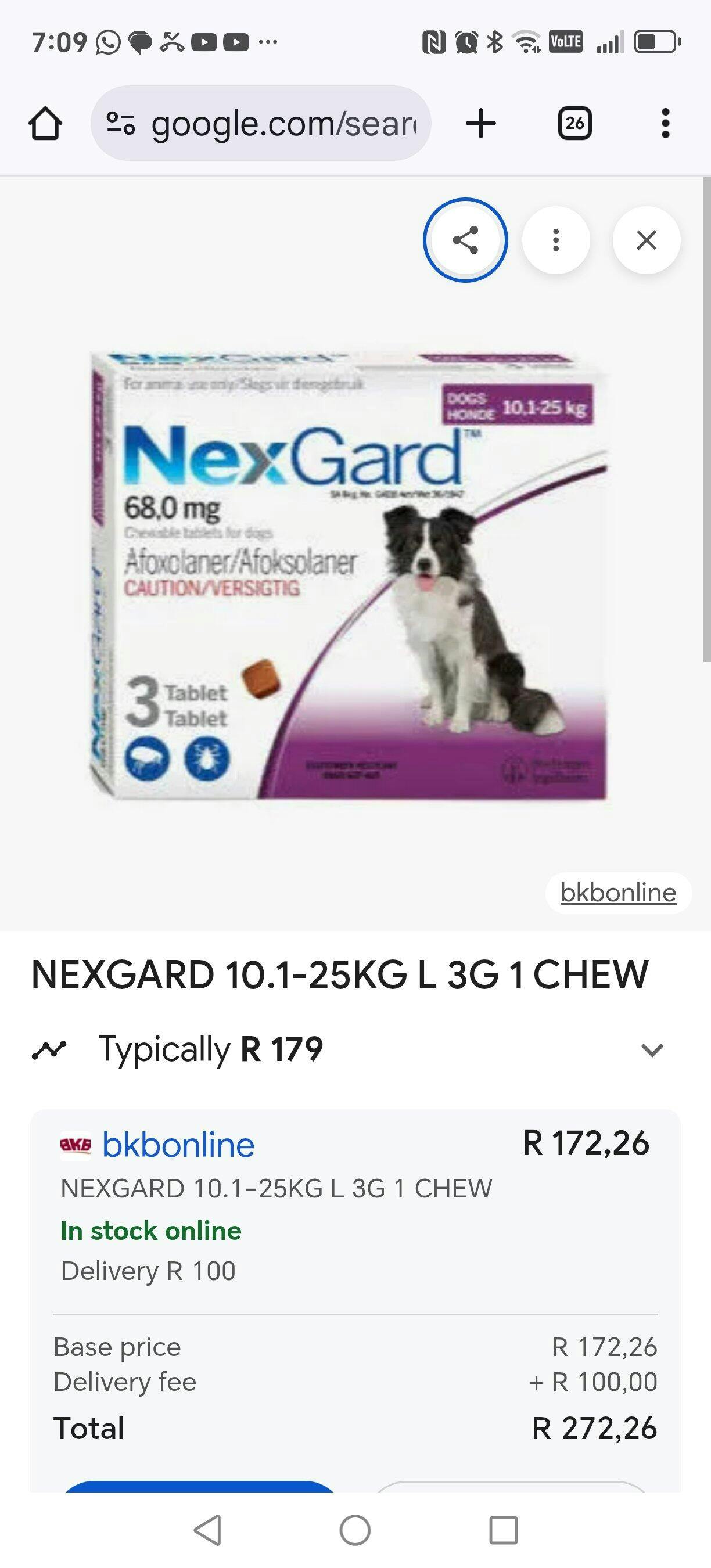 - 1 x NexGard Chewable Tablet for dogs (10.1-25kg)